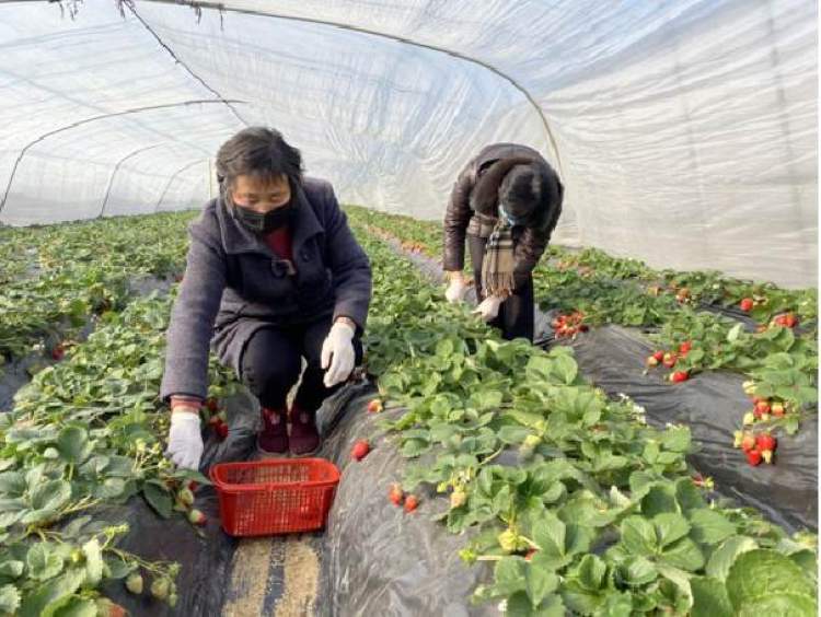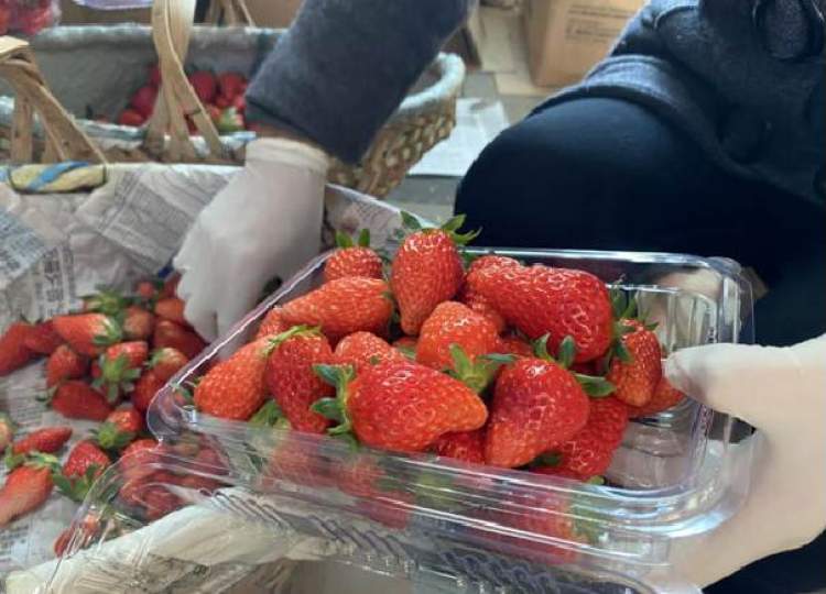 而这两天,草莓园内不复往日人来人往的热闹,只有几家种植户在忙碌的身影——做好防疫消毒措施,戴上口罩和手套,再将大棚里的草莓采摘装篮。