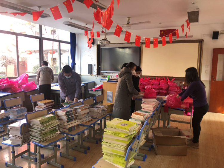 与此同时,上海各个学校的教材消毒、寄送工作也在有序展开。