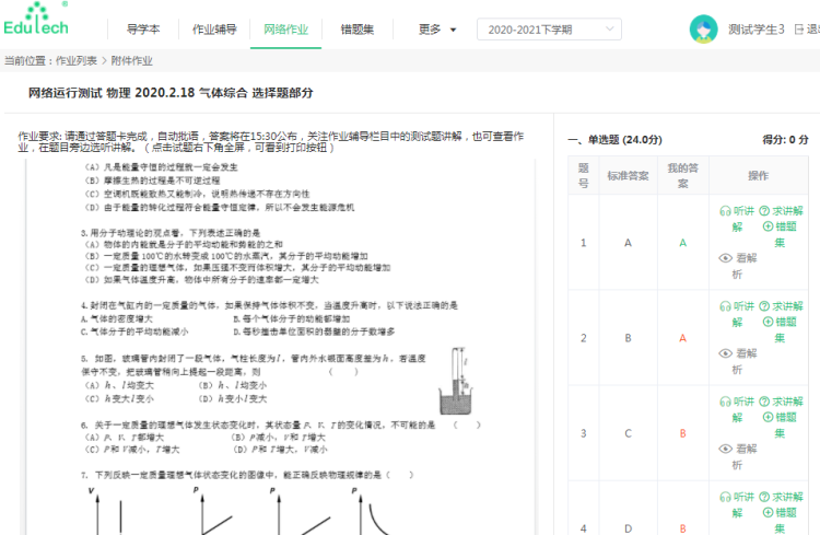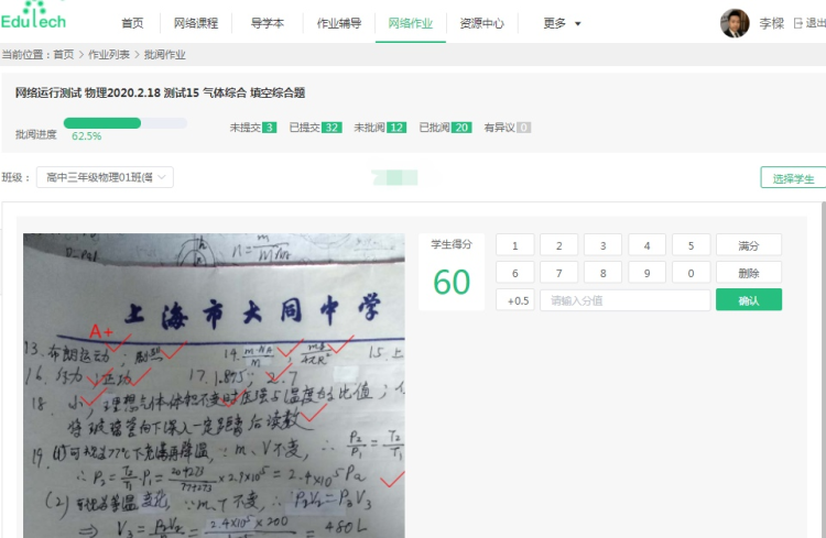 对于高年级段的学生来说,相对学习量、作业量较大。在大同高级中学学校的信息化平台上,老师可以发布作业,客观题可以直接上传答案、智能批改,主观题学生则不必一直面对屏幕,在纸上作答好之后拍照传到后台,老师在照片上直接用电子笔批改反馈。