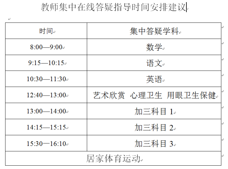大同高级中学采取了市级课程与校本教学结合的方式,进行针对性的教学课表排布。由于市级课程时间尚未出炉,学校暂定了本校答疑时间。