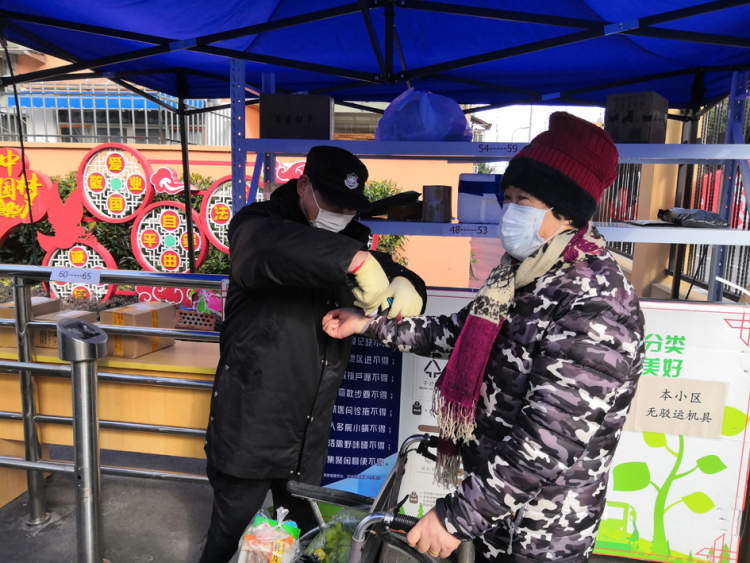普乐二村大门口秩序井然,小区居民刷卡、出示出入证、量体温“三步走”,即可进入小区。
