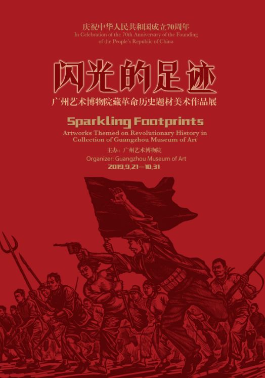 展览简介:为庆祝中华人民共和国成立70周年,广州艺术博物院特别策划了年度重点展览——“闪光的足迹——广州艺术博物院藏革命历史题材美术作品展”。此次展览,从丰富的收藏中精选了革命历史题材美术作品五十多件(实物),包括油画、国画、版画、雕塑、剪纸等不同门类,藉此让观众回顾国家创建和建设所走过的闪光足迹,亦让观众回顾新中国美术发展的历程。根据藏品的特点,此次展览由两个部分组成:第一部分:革命历史。展品主要是反映中国共产党领导下的中国革命历史。展品铺排基本按历史发展的时间先后为序。第二部分:先烈风采。展品主要是展现革命先烈们的英伟形象。第三部分:一代伟人。展品主要展现革命领袖的英伟形象。