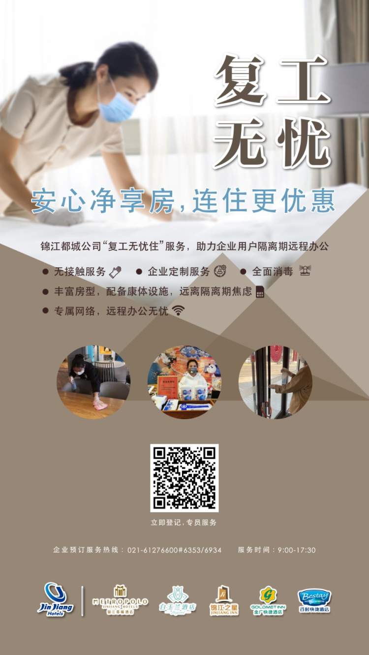 正如锦江都城公司相关负责人表示:“‘复工无忧住’服务既是锦江都城公司企业自救的一项创新尝试,也是为解决更多复工企业后顾之忧的贴心服务。为了实现更安全更有效的复工,这样的良性循环给了酒店行业很多启示。”