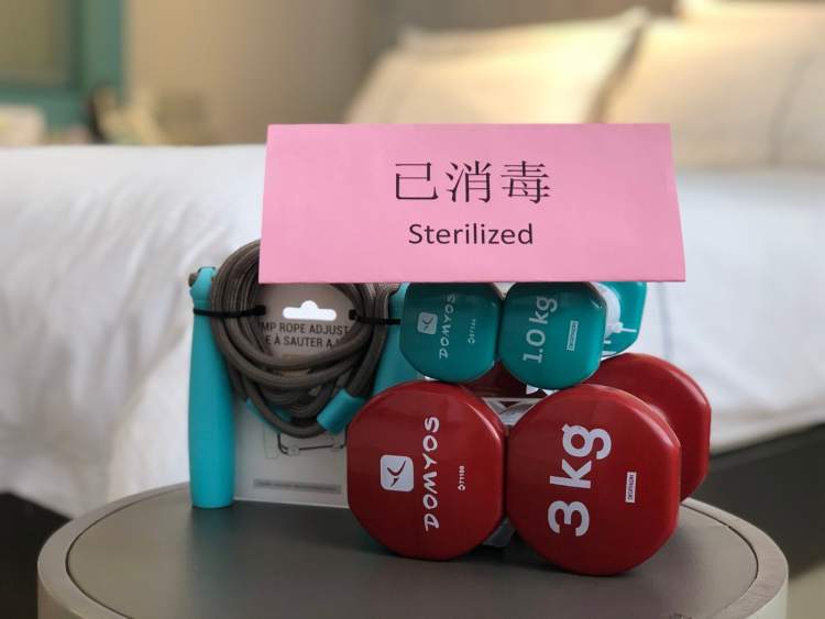 除了减少接触的智能入住系统、增设酒精棉片、洗手液等消毒用品,锦江都城还每日为客人安排了安舒美食营养健康套餐,并且由专人分餐制配送至客房。针对现在对强身健体更重要的共识,每家都城酒店都会确保至少5间安舒健养房,即在客房里配备了瑜伽垫、壶玲等简单的健身器材,满足隔离期间的客人足不出房间就能跟着视频教学进行锻炼。