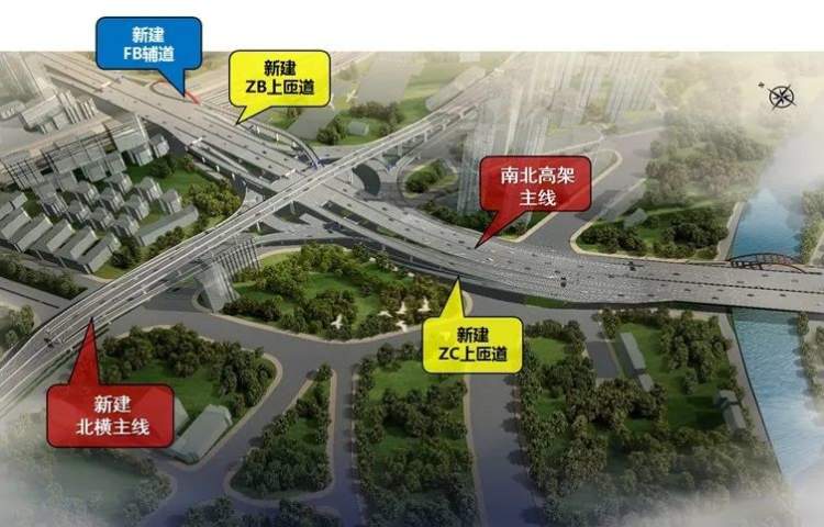同时,南北高架南向北原驶往永兴路下匝道车辆将通过南北高架新建FB匝道通行。