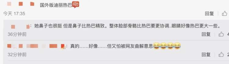 网友对姑娘的颜值,以“彩虹屁”居多:像迪丽热巴!不,是苏菲·玛索!不,是薇诺娜!