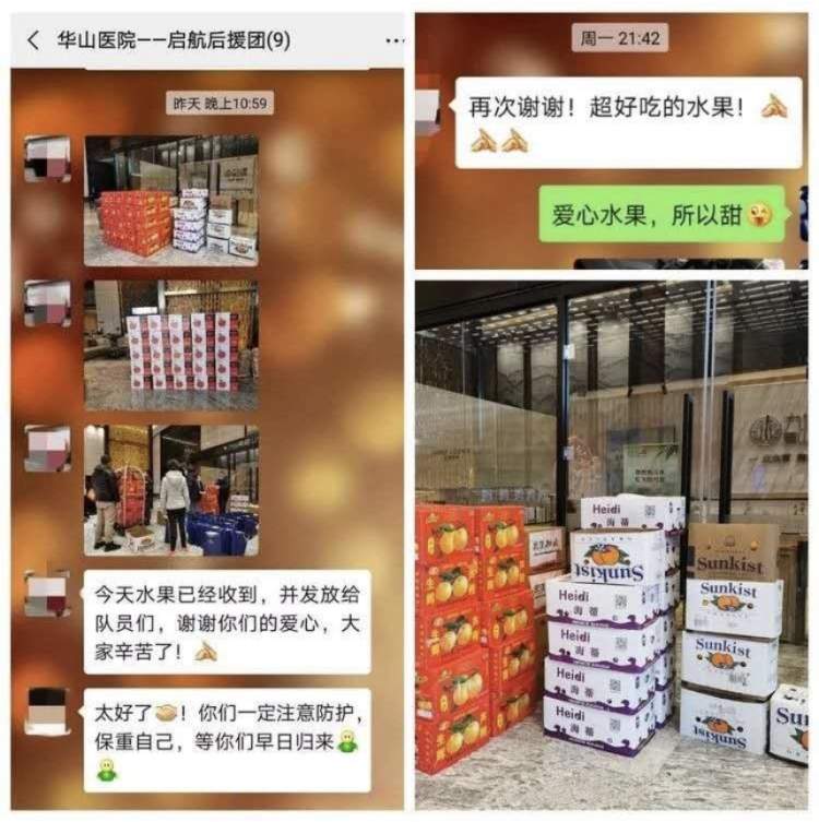 由于方舱医院是临时搭建,生活设施正在不断完善中,后援团了解到前线的华山援鄂救援队员有些不太适应武汉的饮食习惯,有时想吃一个水果,却因工作繁忙,没时间采购。