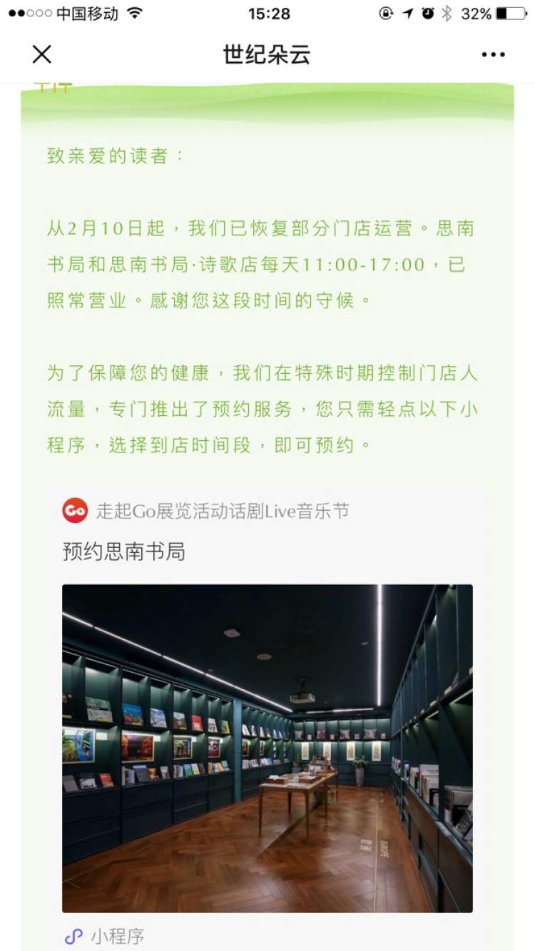 思南书局等推出预约小程序