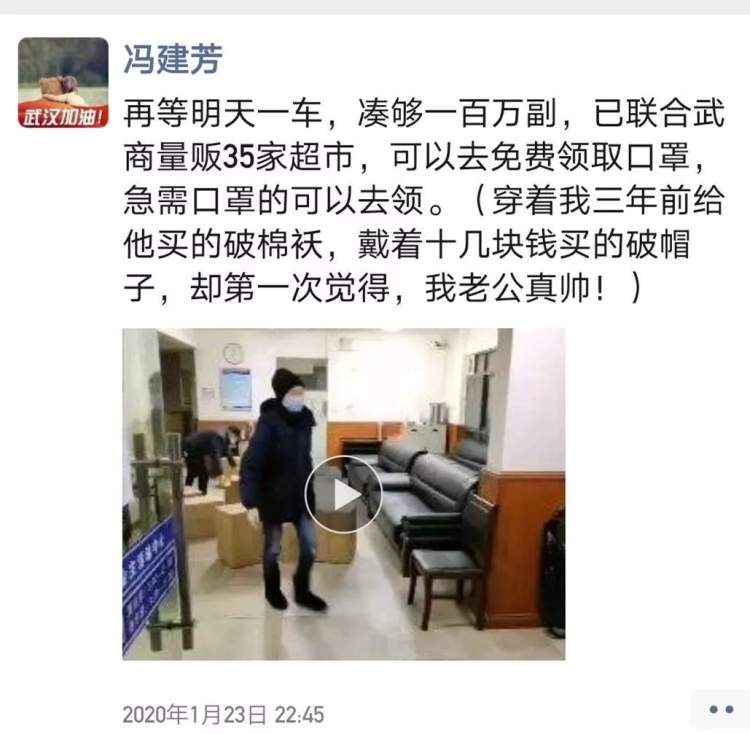 面对愈发严峻的形势,夫妻二人与好友张豪、张帆一起组建了“武汉精神”团队,一同寻找春节期间正常投产的口罩生产商,刚开始就如同大海捞针般,谈何容易。终于,功夫不负有心人,经过多方查找对比,他们选定了仙桃市一家生产厂家。厂家得知他们是自费购买后免费发放,给出了成本价,还赠送了4万只,最终三人花费近20万元,采购了105.3万只口罩,加上后期陆续筹集,共有110万只口罩。
