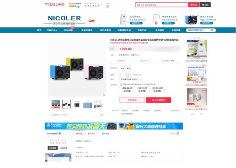 当事人在某电商平台nicoler旗舰店上发布销售名称为“ICOLER预防新型冠状病毒臭氧机发生器家装修甲醛气溶胶消毒杀菌”的产品广告,宣传其臭氧机发生器能预防新型冠状病毒,涉嫌违反《中华人民共和国广告法》相关规定。金山区市场监管局已对当事人开展立案调查。