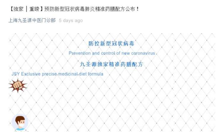 当事人在其公司微信公众号上发布涉及新冠疫情的广告,宣传该公司的中药处方可预防新冠肺炎,涉嫌违反《中华人民共和国广告法》相关规定。闵行区市场监管局已对当事人立案调查。