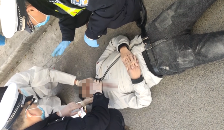 2月23日11时15分许,上海市公安局金山分局枫泾公安检查站民警在执勤时,发现一名男子拖着行李箱走到安检大棚下时突然开始摇摇晃晃,没走两步就倒地并且抽搐不止。几秒钟过后,检查站的民警随即和卫健委工作人员立刻上前查看情况。经医护人员判断,该男子应该是突发癫痫。