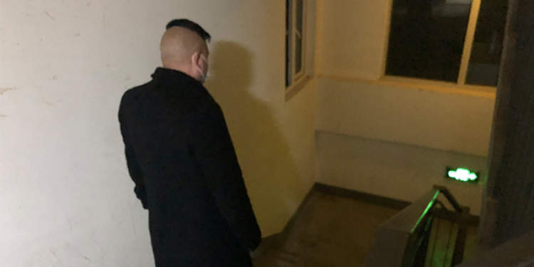 ▲王克伟从消防通道下楼继续巡查