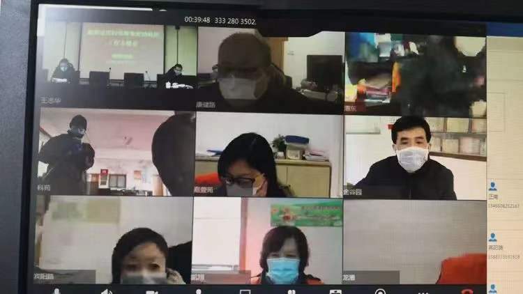 与普通会议不同的是,主会场内只有个别班子成员在场,其余几十名参会人员都隔着电脑屏幕,在“不集中、不面对面”的情况下,将防疫工作迅速部署下去。