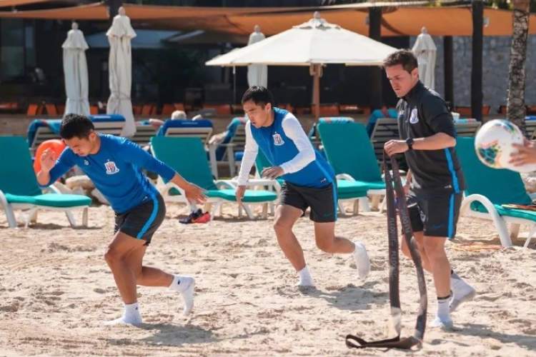前一阶段放假期间,体能教练并没有歇着。每天上午8点半,下午3点半,如果有球员想要训练,都可以跟着他练。结果,这两个时间段,总会不少队员跟着他训练,保持身体状态。当时申花下榻的酒店拥有一片私人海滩,环境也相当不错。有的队员早上起来后,还会先去海滩上跑跑步。