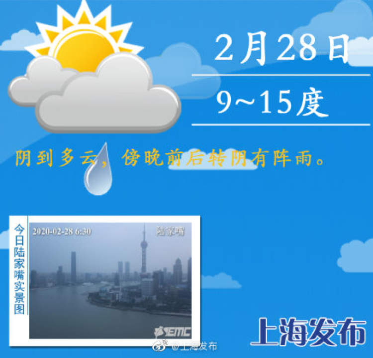 上海今天阴到多云,最高温15度,傍晚前后转阴有阵雨 周到君 2020-2-28 来源:周到上海 上海今天阴到多云,北部地区有小雨,白天最高气温15度。今天傍晚前后转阴有阵雨,夜里到明天局部地区雨量中等。3月1日早晨前后,本市还会有零星小雨,后期开始转阴。提醒大家雨天注意防寒,外出及时添衣保暖,带好雨具,谨防感冒。从3月1日白天开始,本市以阴或多云天气为主,3日夜间有一次短时小雨过程。 来源:周到上海 作者:周到君 赞一个 (0)