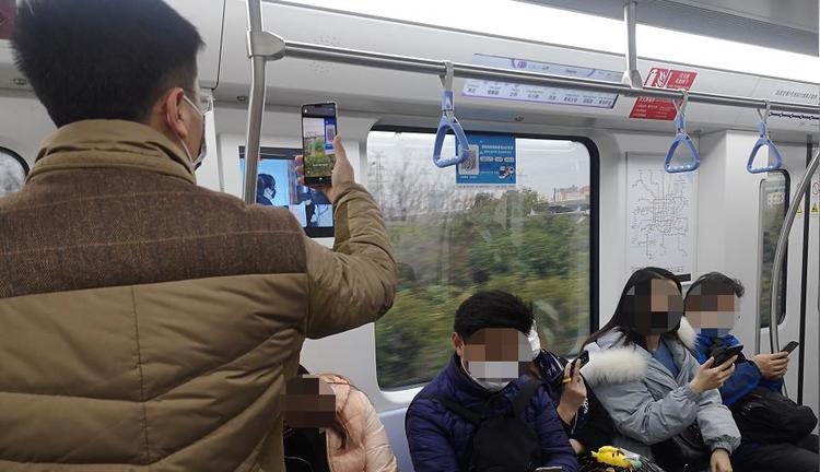 在地铁1号线,有的乘客一进地铁就自觉扫码登记。