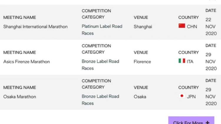 国际田联官网今天更新的赛事日历显示,2020上海国际马拉松升级白金标,成为国内首个国际田联白金标赛事。不过目前,上马方面尚未得到国际田联通知确认,且官网“11月22日”的比赛日期是错误的。
