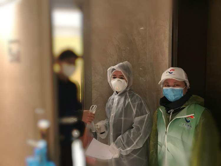 对于隔离户,一般是物业人员上门配送快递和外卖。那不会中文的韩籍居民想取件,应该怎么和物业人员交流呢?居委干部早就想好了这一点,隔离前就教会了韩籍居民一句中文:您好,我是住在**栋**室的业主,请帮我取一下快递/外卖,谢谢。居委干部说:“韩籍居民当时学这句话时很配合、很投入,我们教了三四遍就学会了,之后他们与物业人员沟通也比较顺畅。”