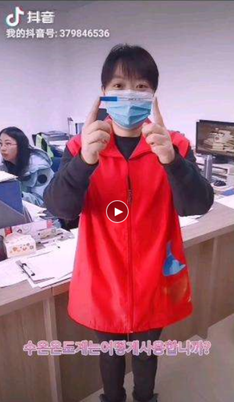 看一看、甩一甩、夹在腋下五分钟……近日,一段抖音在新虹的韩籍居民的朋友圈里刷屏了。这段视频中,申贵路居委的居委干部手持水银体温计,进行体温计的用法示范。记者注意到,屏幕下方还贴心配有韩文字幕。