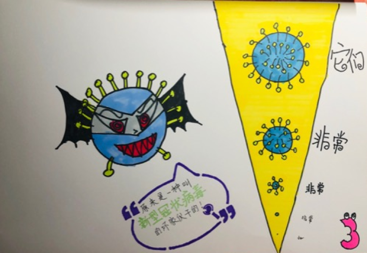 民办沪东外国语学校4年级乔子腾则制作了一份“新型冠状病毒大数据”电子小报,视频经过三遍反复录制,才基本完成了音频和视频的匹配。上海协和双语学校3年级的于靖函,《防疫小卫士的一天》完整展现了宅家防疫的一家四口如何度过健康又安全的一天。明强第二小学鲁毅晨通过一组绘本《不一样的鼠年》,来表现这个寒假不能出门、宅家防疫。