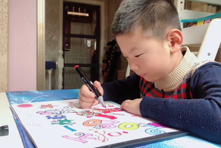 “今年过年和往年大不一样,一开始真的不习惯,我以为在家会很无聊,以前爸爸妈妈总会带我到处去旅游,就是因为冠状病毒的到来,让我们甚至全中国的人都窝在家里。我刚上一年级,会写的字太少了,只能用画画的方式来表达在这个特殊的春节里,我们家是怎么过的。”