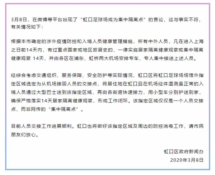 今天,虹口区政府新闻办就此进行了回应表示是交接点而非集散地,网传消息与事实不符。