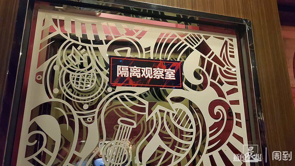 该KTV设有一件专门的隔离观察室。这间房间原来也是一个普通包房,现在被改造成专门的隔离室。如果前台测温时,发现有体温异常的客人,考虑到体温升高可能有多种原因,会先把客人带到隔离室隔离,待半个小时之后再进行测温,如果体温仍旧异常,好乐迪就会立即上报给有关部门。