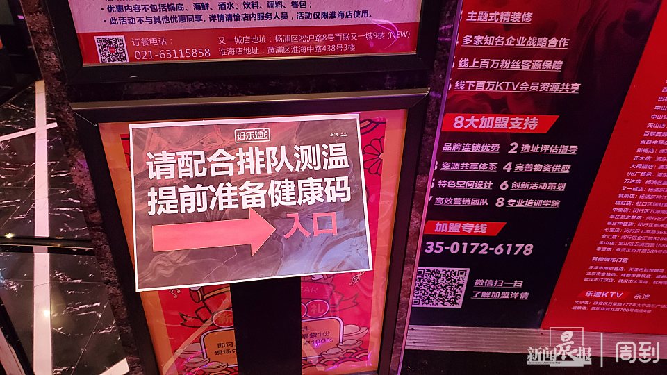 在KTV的入口处,有着必须测温和出示随申码的标语。
