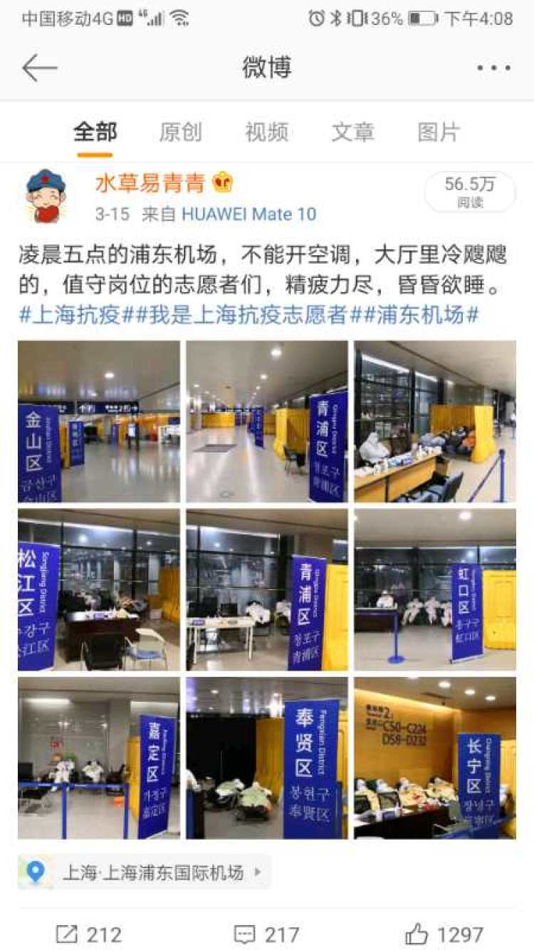 3月15日凌晨5点,上海夜间气温低至8℃,金山区外语志愿者杨勇,在值班岗位上被冻醒。他起身溜达了一会儿,活动了活动发麻的脚,并随手拍下了一组九宫格照片。