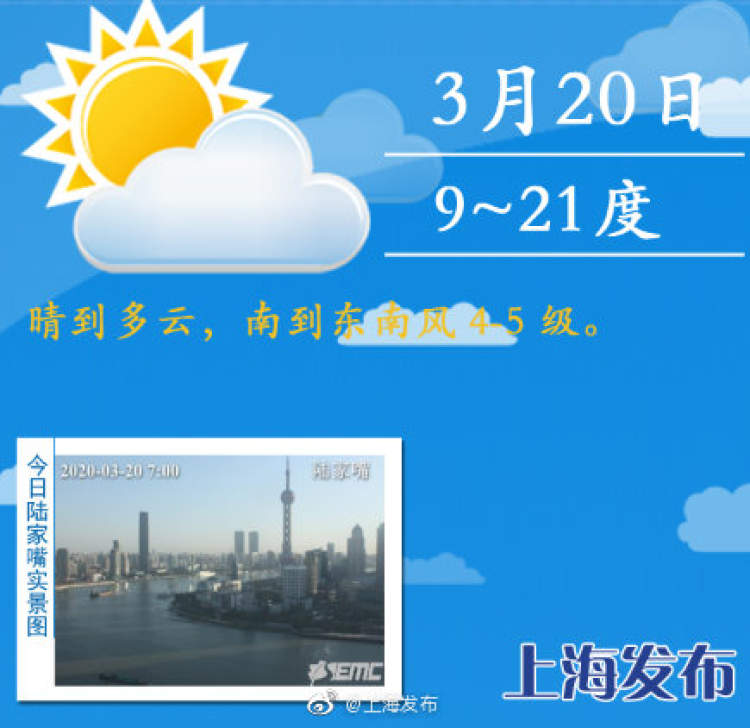 春风浩荡,阳光继续大放送,下周雨水回归抓紧洗晒 周到君 2020-3-20 来源:周到上海 今天上海晴到多云,阳光继续大放送。今晨最低气温降到9℃左右,是近期的低值,午后重回20℃。早午温差大,大家不要急于减衣。 下周初期申城气温小幅下滑,最低温保持在12℃以上。下周中期开始,申城时阴时雨,25日前后降水较明显。需要洗晒的朋友,抓紧近几日的好春光。 来源:周到上海 作者:周到君 赞一个 (0)