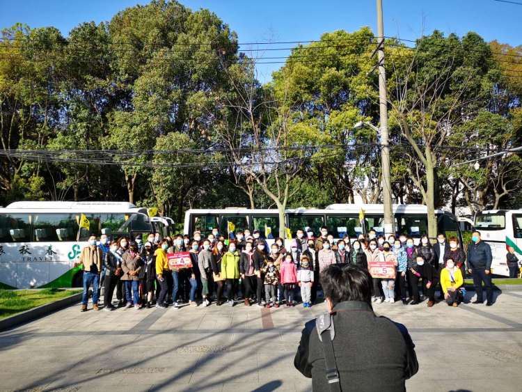 今天一早,7个旅游团共154名游客,在春秋大厦集结,分批出发,成为上海旅游重启后,踏上旅途的首批旅游团成员。他们将前往崇明、嘉定等上海本地景点,进行踏青郊游活动。