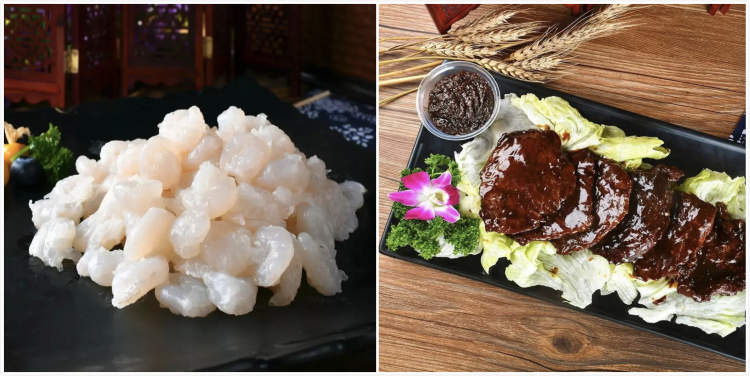 半成品包括:清炒河虾仁、黑椒煎牛排。