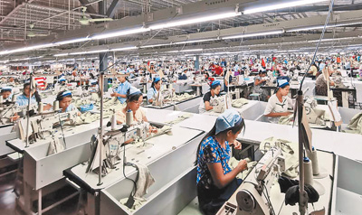 东隆(缅甸)服装有限公司厂房内,工人们正在加紧生产。