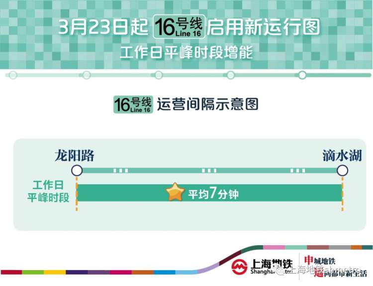 实施新举措后,早高峰运力有所提升,将一定程度缓解16号线早高峰客流压力。另外,16号线平峰时段还将增投2列列车,平峰时段全线列车运行间隔由平均8分钟缩短至平均7分钟;同时,16号线平峰时段大站车运行班次也将增加,由约100分钟一班缩短至约60分钟一班。
