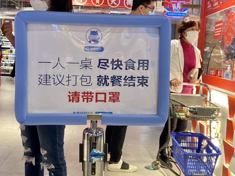 每位顾客进店都需要戴好口罩,店内也随处摆放了安全提醒。
