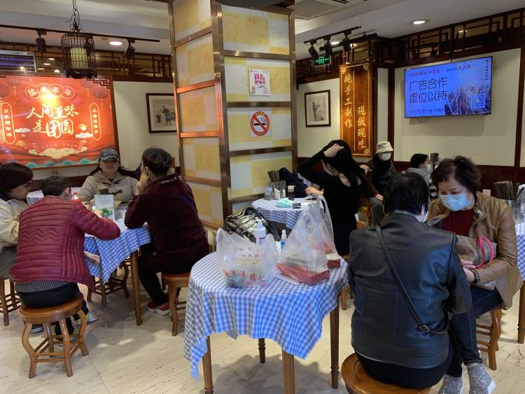 随后,记者又来到了豫园商圈的宁波汤团店。下午4点多,店里还零星坐着好几桌客人。“现在堂食大概恢复到原来的三分之一左右。”宁波汤团店负责人一边说一边帮客人打包青团。