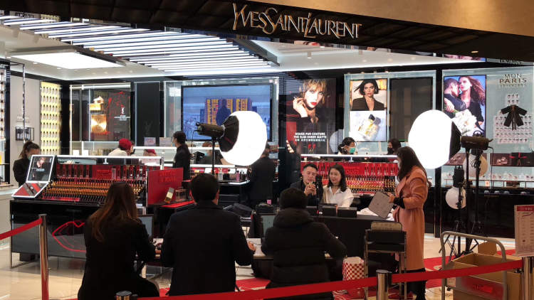“今天要为大家介绍的是这款乳液。”随着来自新世界大丸百货某品牌柜姐(售货员)的开场白,一场“云直播”就此开启。