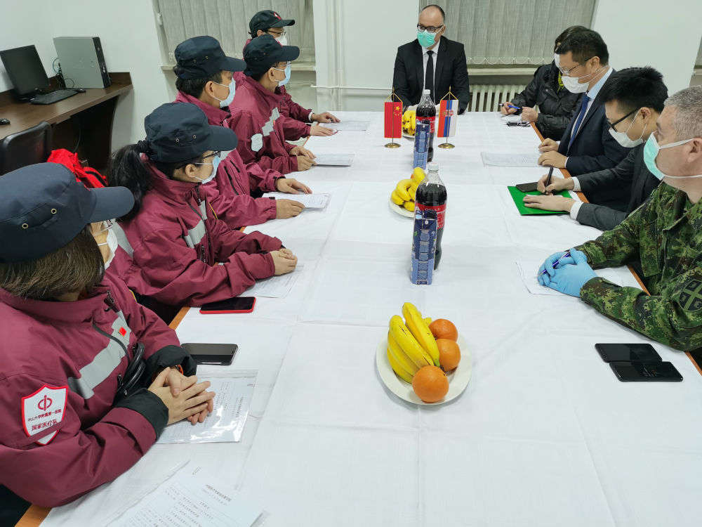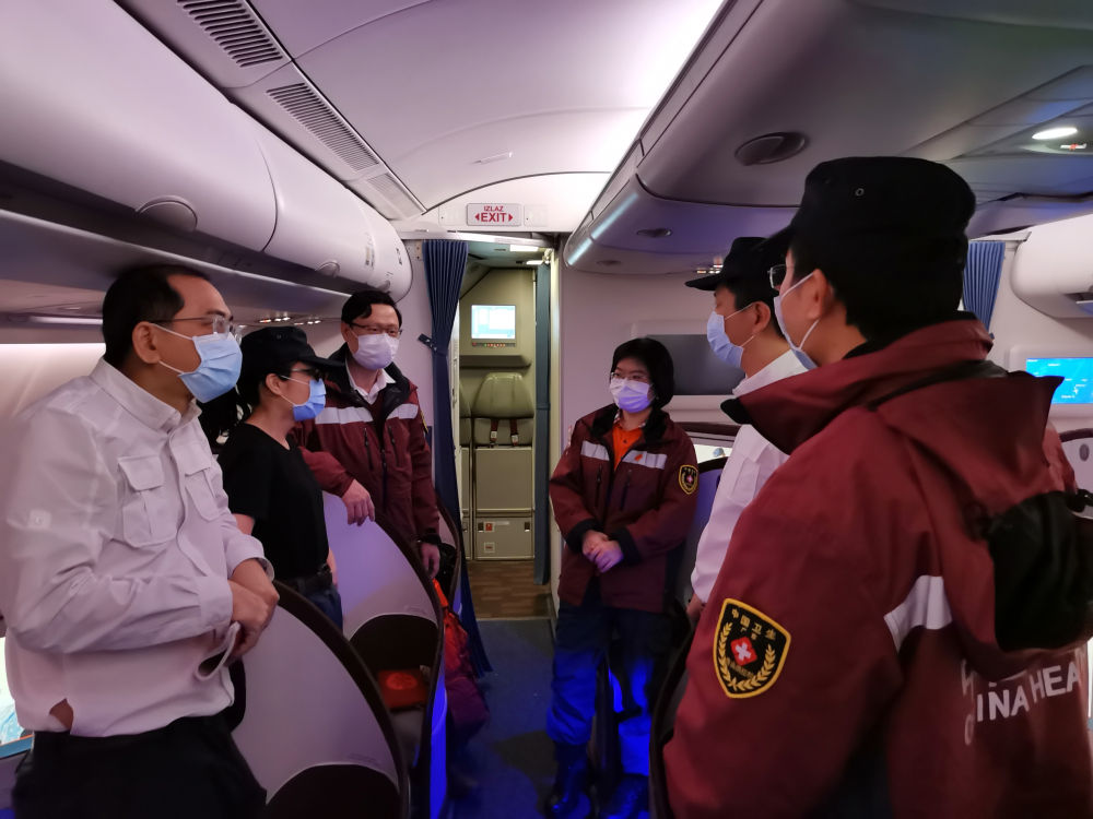 3月21日,援助塞尔维亚抗疫医疗专家组一行6人乘专机飞往塞首都贝尔格莱德,由中国政府捐赠的一批医疗物资同机抵达。