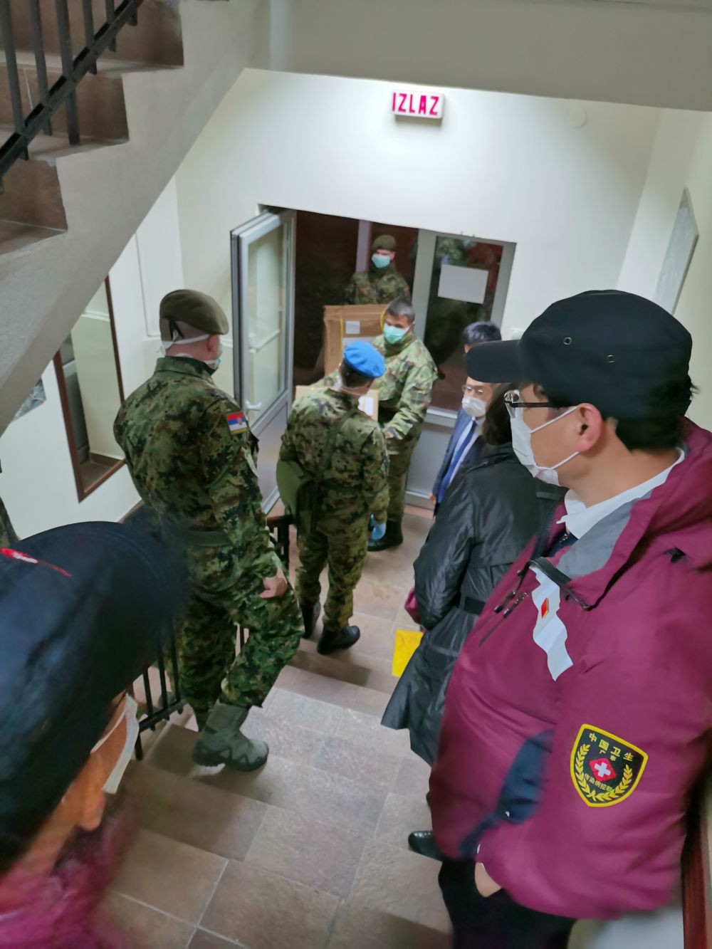 ⬆️塞方军人搬运中国抗疫医疗专家组带来的医疗物资。