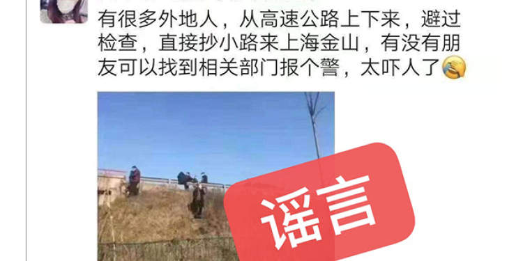 ▲“有人从金山翻越围栏入沪”最终被证实系谣言