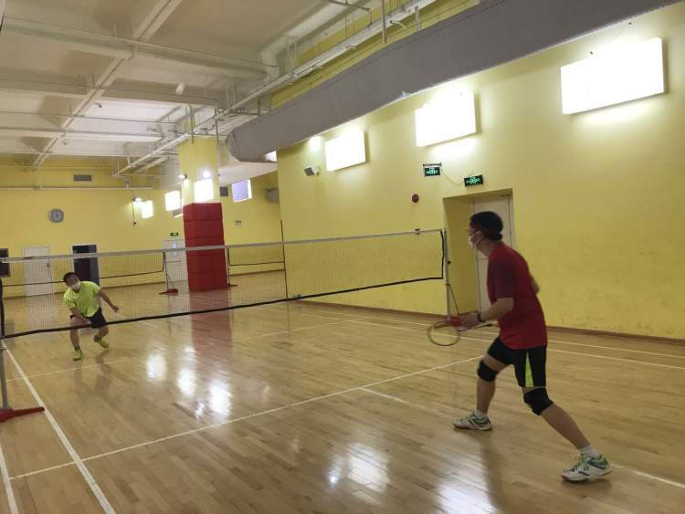 目前,健身运动中心内原有的四块羽毛球场地只对外开放两块场地,场馆要求锻炼者保持安全距离,并全程戴口罩打球,暂时只能单打,不能双打。