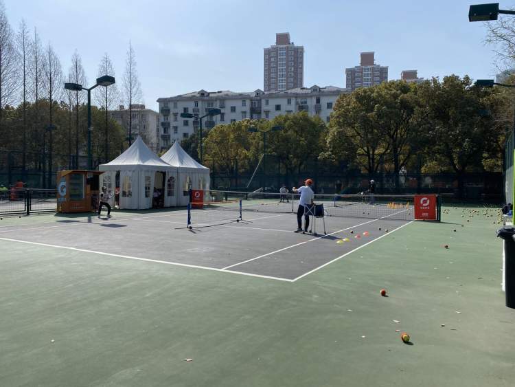 来到江湾体育场,这里的网球除租场地的散客外,小朋友的网球培训也恢复正常。