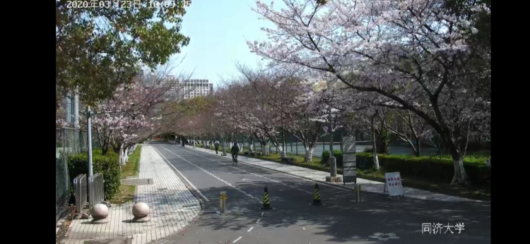 今天(3月23日)起,同济大学联合央视频启动为期近20天的慢直播云赏樱活动,学校架设了直播专线,让大家能够24小时看到樱花从初绽到盛放的过程,可以自由切换视角,从校园的樱花大道南、樱花大道北以及樱花大道全景的角度观看景色。