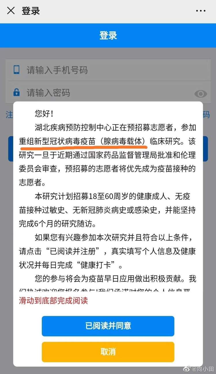 疫苗团队也跟我们很明确讲过,在我们注射疫苗之前,哪怕我们体检通过了,只要疫苗这一针还没扎下去,我们随时可以退出,随时可以反悔,不用承担任何责任。”