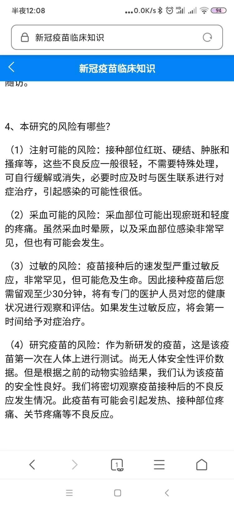 我们在注射疫苗之前,就是我18号体检之前,第一项被告知的就是知情权,疫苗团队会给我们一份知情书,告诉我们这是一个什么样的实验,实验的目的是什么,需要我们这些实验对象配合做什么工作,实验过程中存在什么风险,疫苗团队对风险的应对是什么样的,讲得非常清楚。