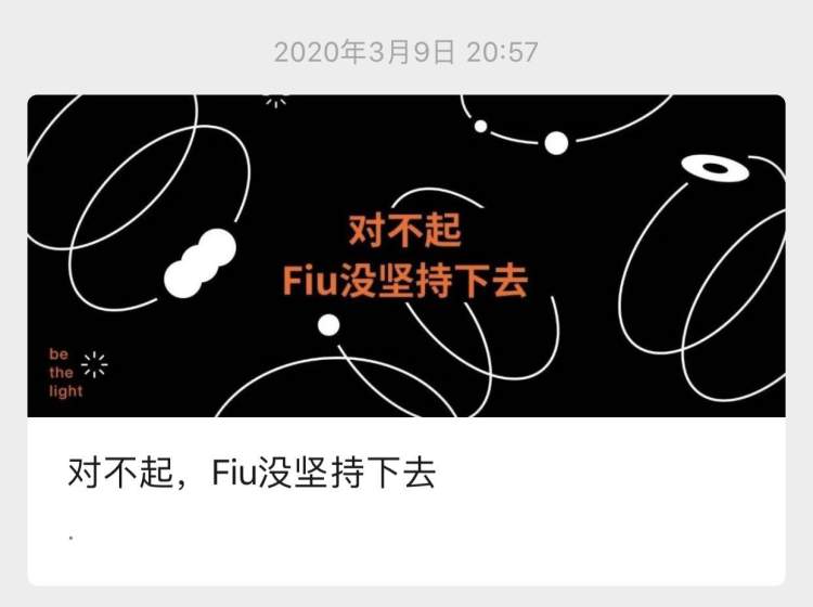 3月9日晚,公众号“FiuFiu”发布了一篇《对不起,Fiu没坚持下去》的文章,3分钟后,微信后台的评论就炸开了锅。没有仔细读完全文的粉丝纷纷留言,表达自己的震惊、遗憾和不舍。