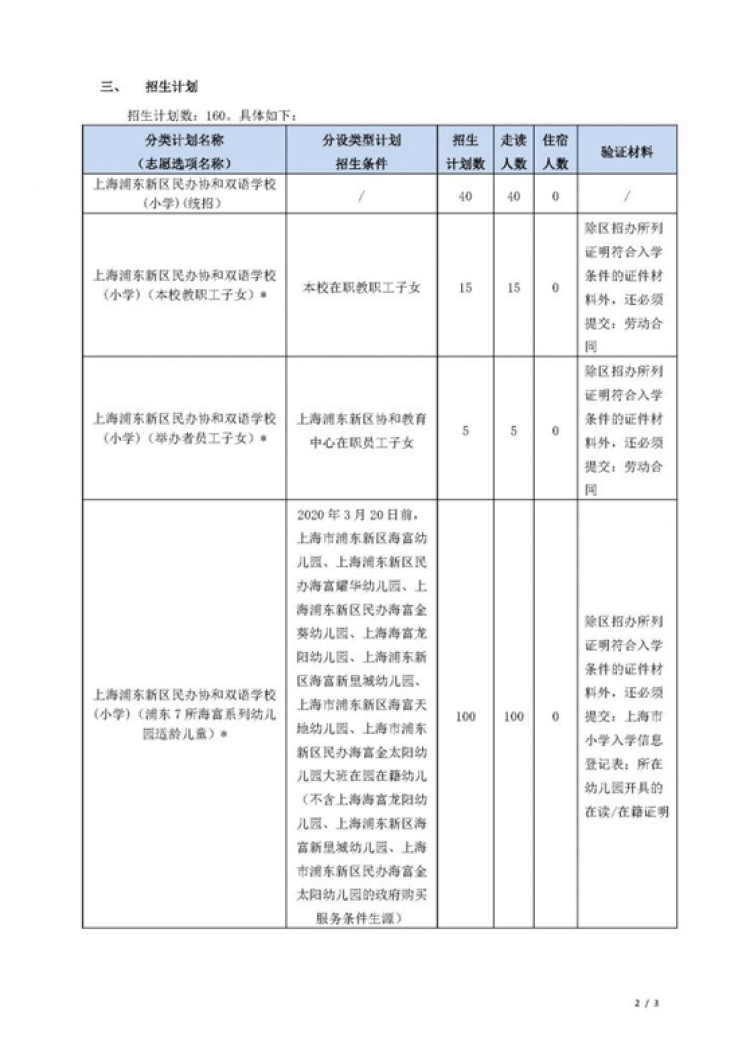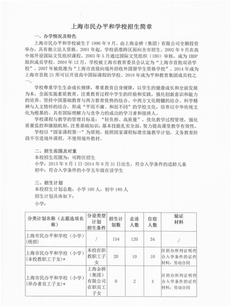 浦东协和双语学校对于分设计划中的本校教职工子女和举办方子女,招生简章上注明:必须递交劳动合同。