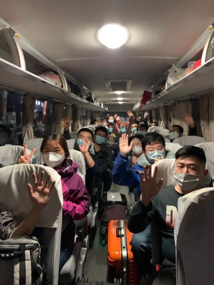 正当江南造船集团重点项目面临急需技术人员到岗的关键时期,久事集团旗下强生控股成员企业久通商旅公司主动应战,多方协调,经市交通委特批,本市首批“点对点,一站式”专用包车奔赴外地接这家单位的技术人员来沪。今天,2辆大巴已于15时30分左右返沪。