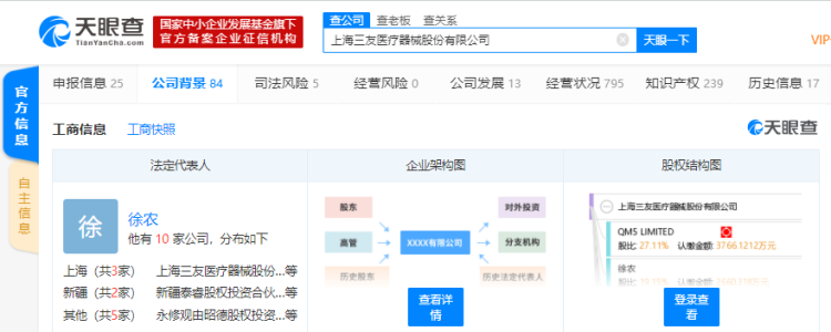 天眼查数据显示,三友医疗成立于2005年4月,公司法定代表徐农,注册资本15400万元人民币(见下图)。公司主要致力于骨科内植入物研发、生产和销售,主要经营拓腾和三友品牌的脊柱和创伤内植入物产品,共计百余种品种、千余个规格,经销渠道遍布全国各省市。